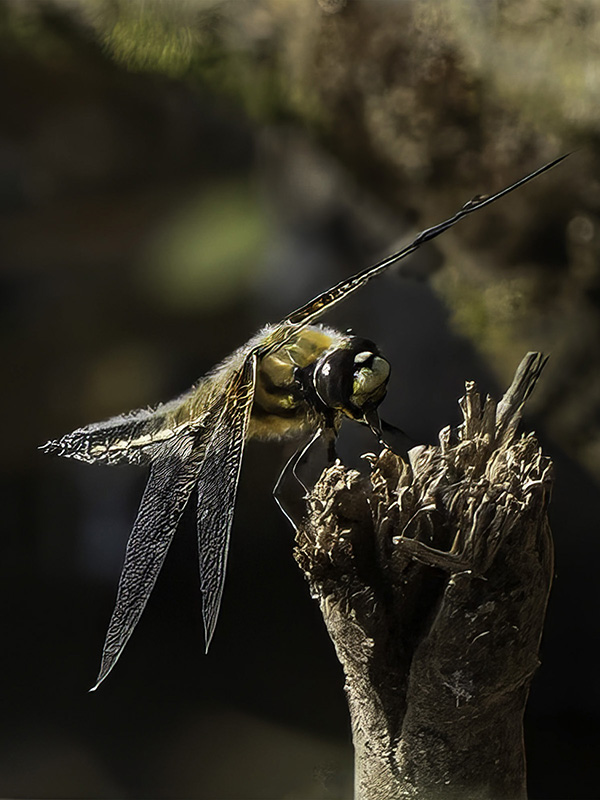 dragonfly on tree stump